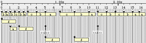 {abc,de}has a duration of three beats, while{de,abc}has a duration of two.