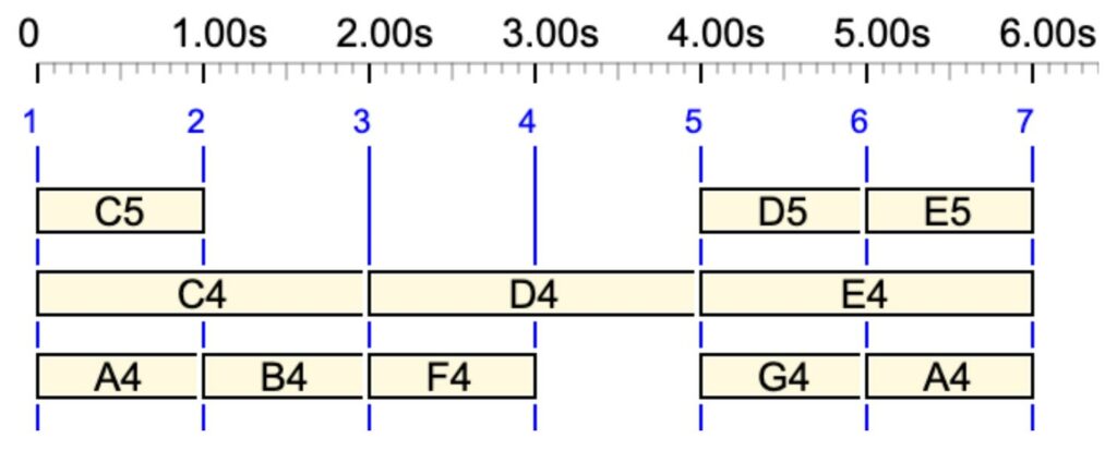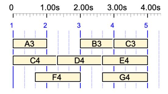 Item {C4 D4, E4 F4 G4, E5} on a sound-object graph The duration is 2 beats, as set by the first field "C4 D4"