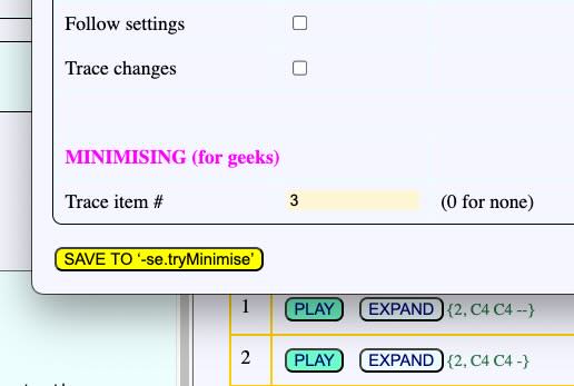 All examĀples are found in the "-da.tryMinimise" data file (disĀtribĀuted from the 3.3.6 verĀsion). Click the MINIMISE butĀton to minĀimise all (eliĀgiĀble) polyĀmetĀric expresĀsions on the page.